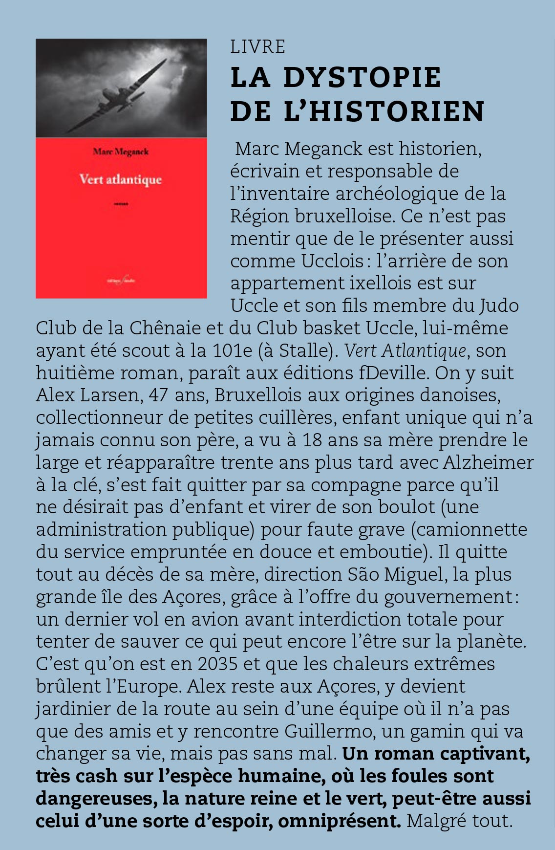 Un article de Thierry Fiorilli dans le Wolvendael magazine.