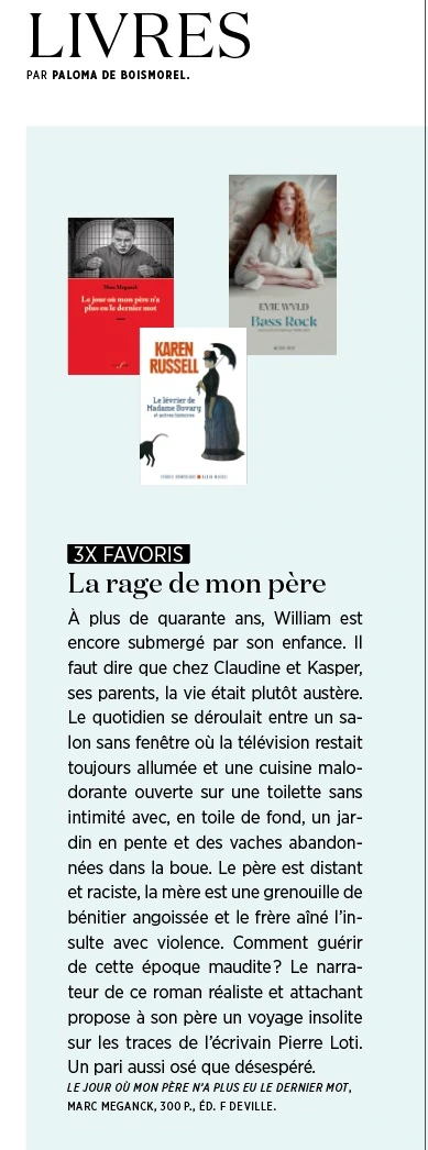 À plus de quarante ans, William est encore submergé par son enfance. Il faut dire que chez Claudine et Kasper, ses parents, la vie était plutôt austère. Le quotidien se déroulait entre un salon sans fenêtre où la télévision restait toujours allumée et une cuisine malodorante ouverte sur une toilette sans intimité avec, en toile de fond, un jardin en pente et des vaches abandonnées dans la boue. Le père est distant et raciste, la mère est une grenouille de bénitier angoissée et le frère aîné l’insulte avec violence. Comment guérir de cette époque maudite ? Le narrateur de ce roman réaliste et attachant propose à son père un voyage insolite sur les traces de l’écrivain Pierre Loti. Un pari aussi osé que désespéré.
